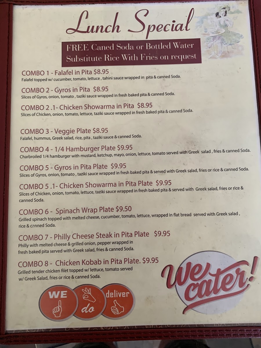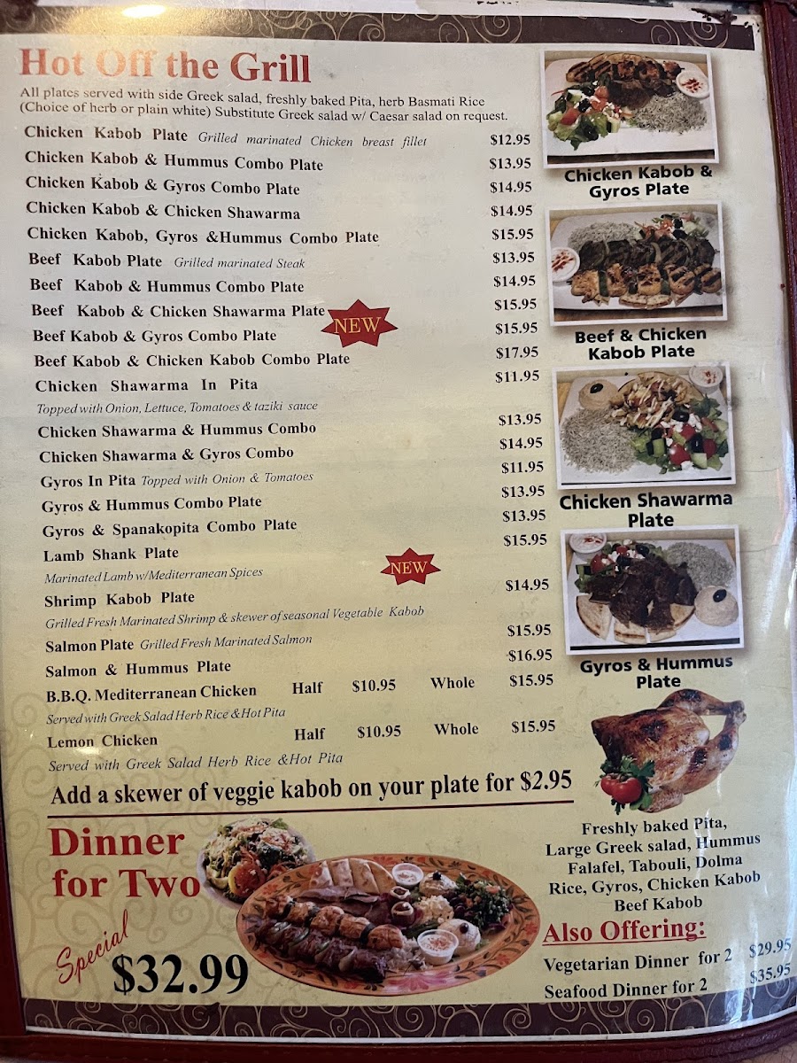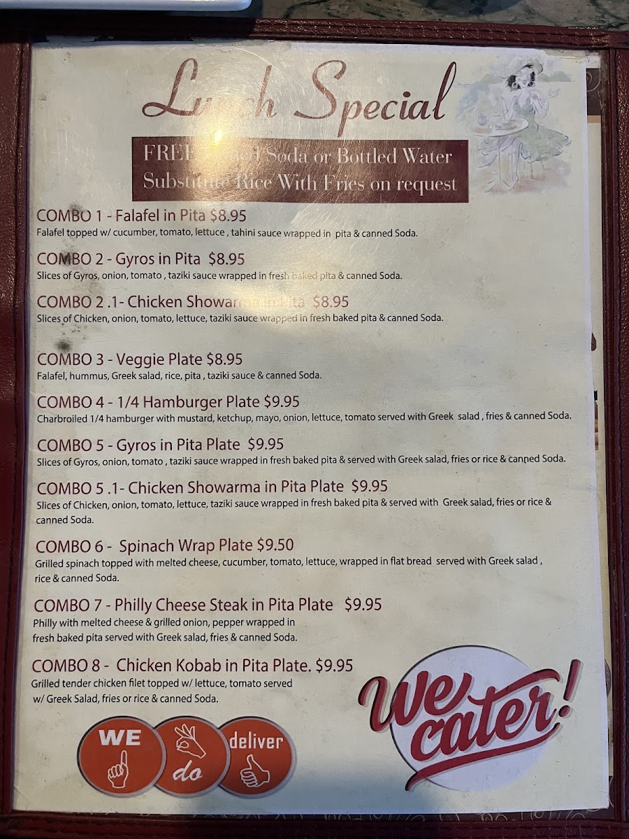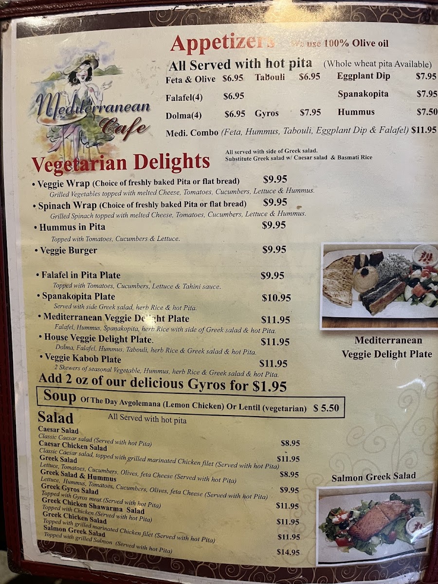 The Mediterranean Cafe Menu at 112 W Washington St in San Diego offers a flavorful journey through the vibrant and fresh tastes of the Mediterranean. Whether you're craving savory dips like hummus and baba ghanoush, or you're in the mood for a light yet satisfying Greek salad, this menu has something to delight every palate. Enjoy hearty meals like grilled lamb chops or perfectly roasted chicken, all seasoned with aromatic herbs and spices that transport you to the sun-soaked shores of the Mediterranean. For those with a sweet tooth, don't miss out on the traditional baklava to round off your meal with a touch of honeyed indulgence. Perfectly paired with a glass of wine or a refreshing iced tea, every dish here is prepared with care and passion. Whether you're dining in or taking out, this menu promises an authentic taste that leaves you coming back for more.